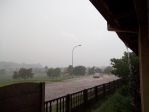 We still live in the same house, but sadly the big acacia where we hid, is gone. The house with the inviting half-round stoop is still there, but fenced in now. I think the house changed hands. I am posting a pic, showing the veld and acacia trees (which get trimmed these days - no more 'umbrella' to hide under.) The pic was taken during a storm, hence the 'river' the car is driving through.