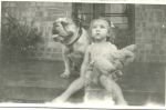 I am attaching a photo of me with Bulla, taken in 1947. The other one is just to show the wrought-iron railings. There I am with my beloved Auntie and Gran.