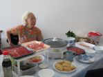 My sister's electric hot pot was a large stainless steel vessel, with the soup stock boiled in a deep bowl. While the hot pot simmered, a variety of ingredients like thinly sliced beef, chicken and pork, Chinese white cabbage, shiitake mushrooms, tofu, fish and prawns, were all cooked at the table.